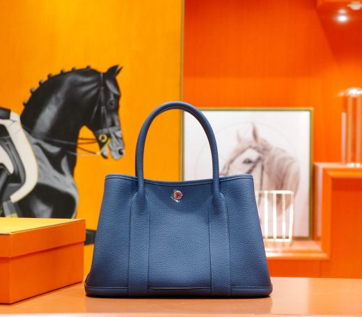MrBirkin Garden Party Togo Leather Gem Blue Silver Hardware 30cm Full Handmade
