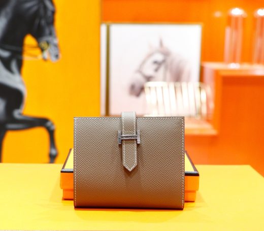 MrBirkin Beran Short Wallet Epsom Leather Etoupe Grey Silver Hardware 10cm Full Handmade