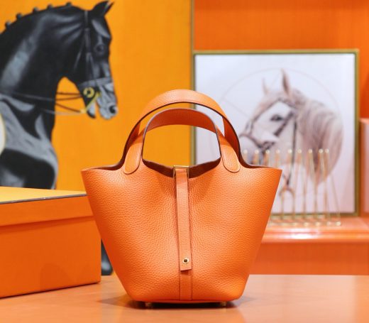 MrBirkin Picotin Togo Leather Bright Orange Gold Hardware 18cm Full Handmade