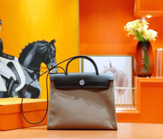 MrBirkin Herbag Canvas & Leather CK18 Etoupe Grey Silver Hardware 31cm Full Handmade