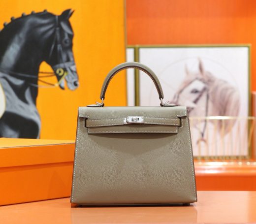 MrBirkin Kelly Epsom Leather CK18 Etoupe Grey Silver Hardware 25cm Full Handmade