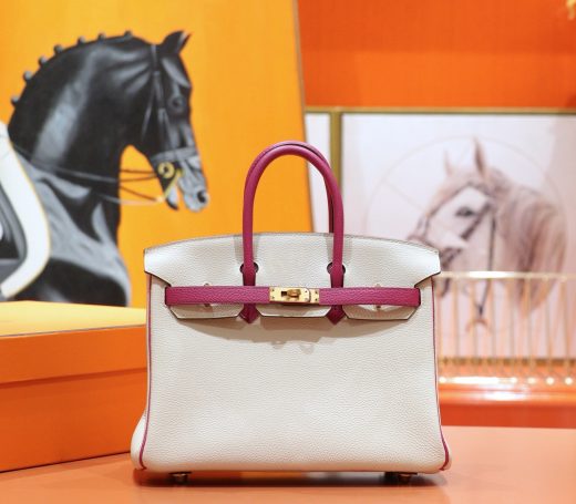 MrBirkin Birkin Togo Leather Cream White & Pink Gold Hardware 25cm Full Handmade