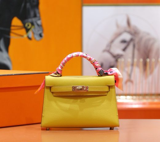 MrBirkin Mini Kelly Epsom Leather Amber Yellow Gold Hardware 19cm Full Handmade