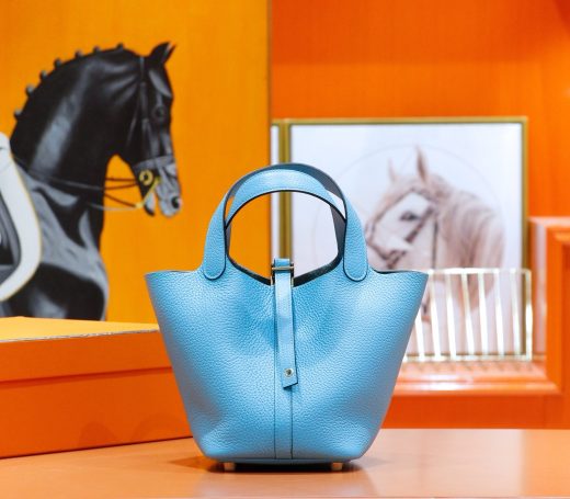 MrBirkin Picotin Togo Leather Candy Blue Gold Hardware 18cm Full Handmade