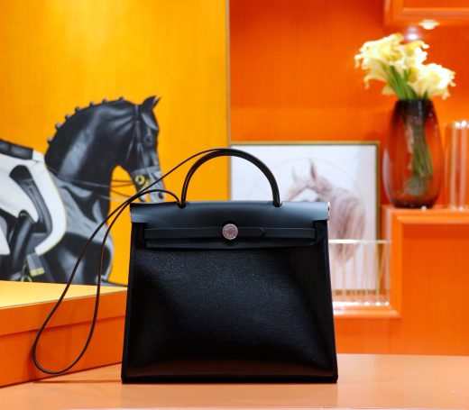 MrBirkin Herbag Canvas & Leather CK89 Black Silver Hardware 31cm Full Handmade