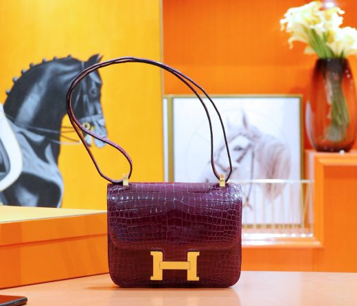 MrBirkin Constance Shiny Alligator Crocodile Grape Purple Gold Hardware 24cm Full Handmade
