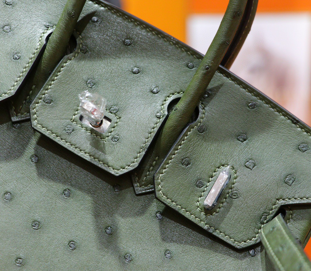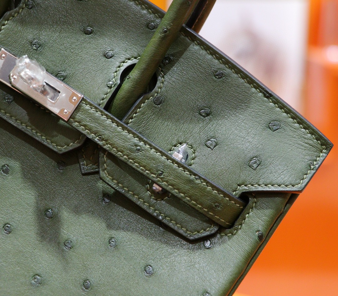 Hermes Birkin South Africa Ostrich Olive green Silver Hardware 25m Full Handmade