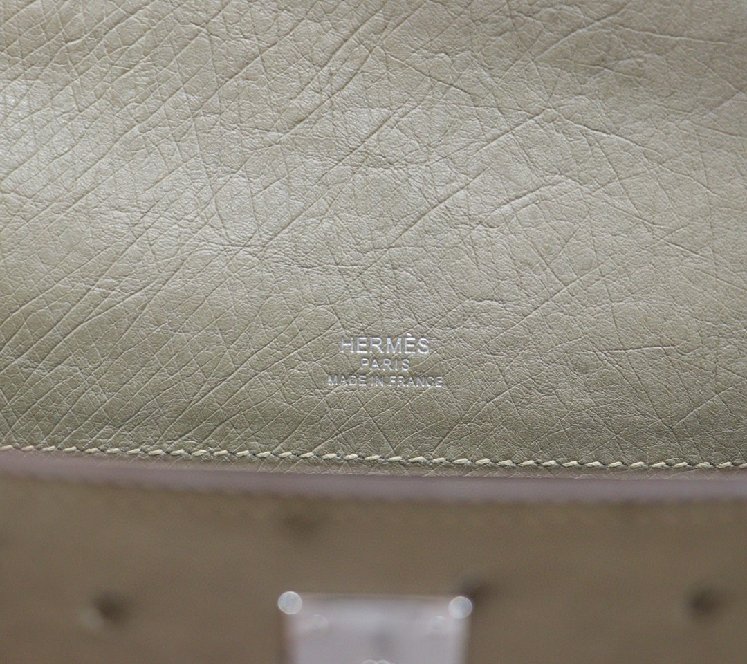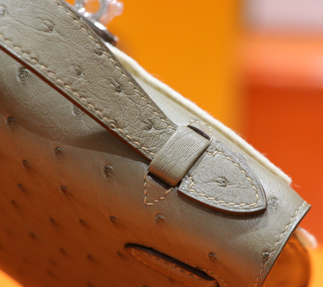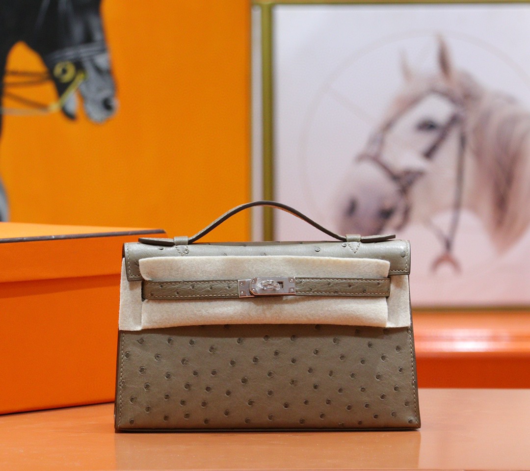 Hermès Mini kelly Pochette Ostrich Etoupe Grey Silver Hardware 22cm Full Handmade