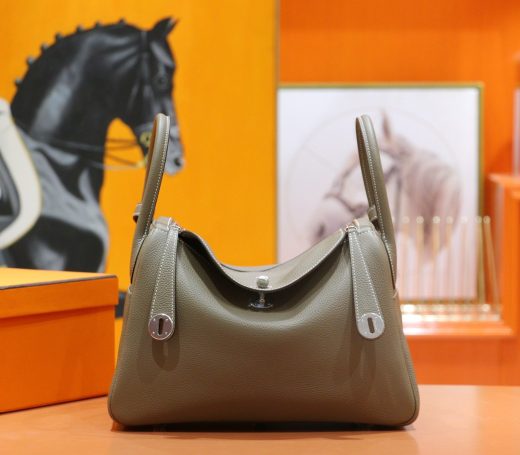 Hermes Lindy Togo Etoupe Silver Hardware 30cm Full Handmade
