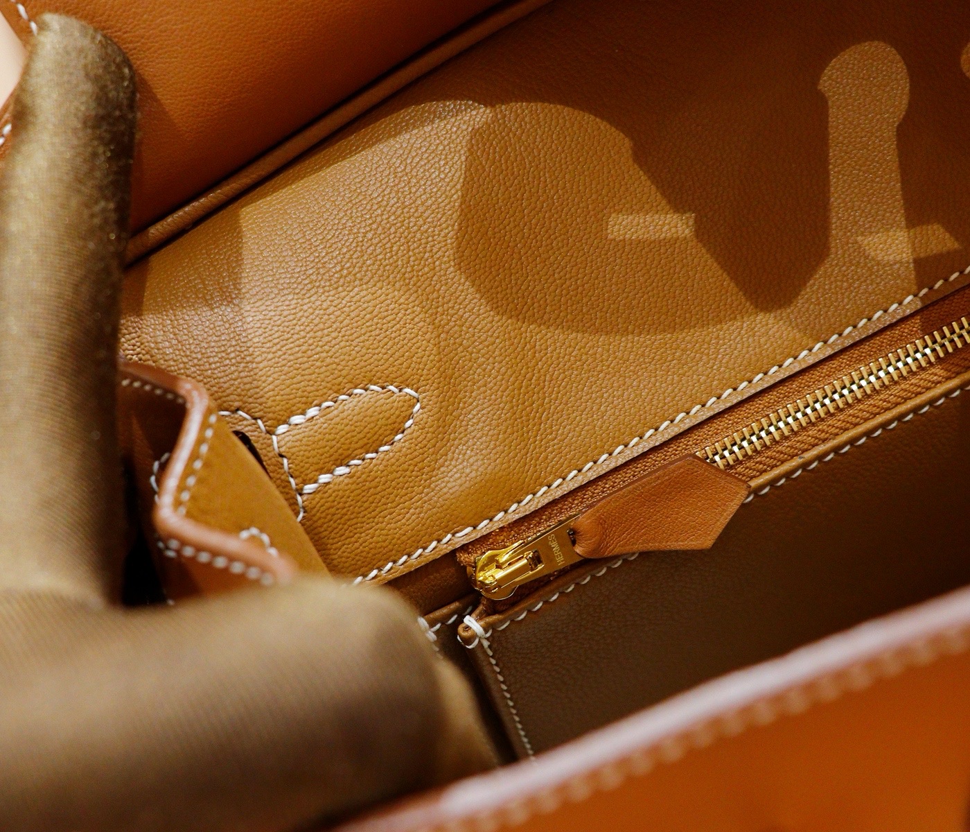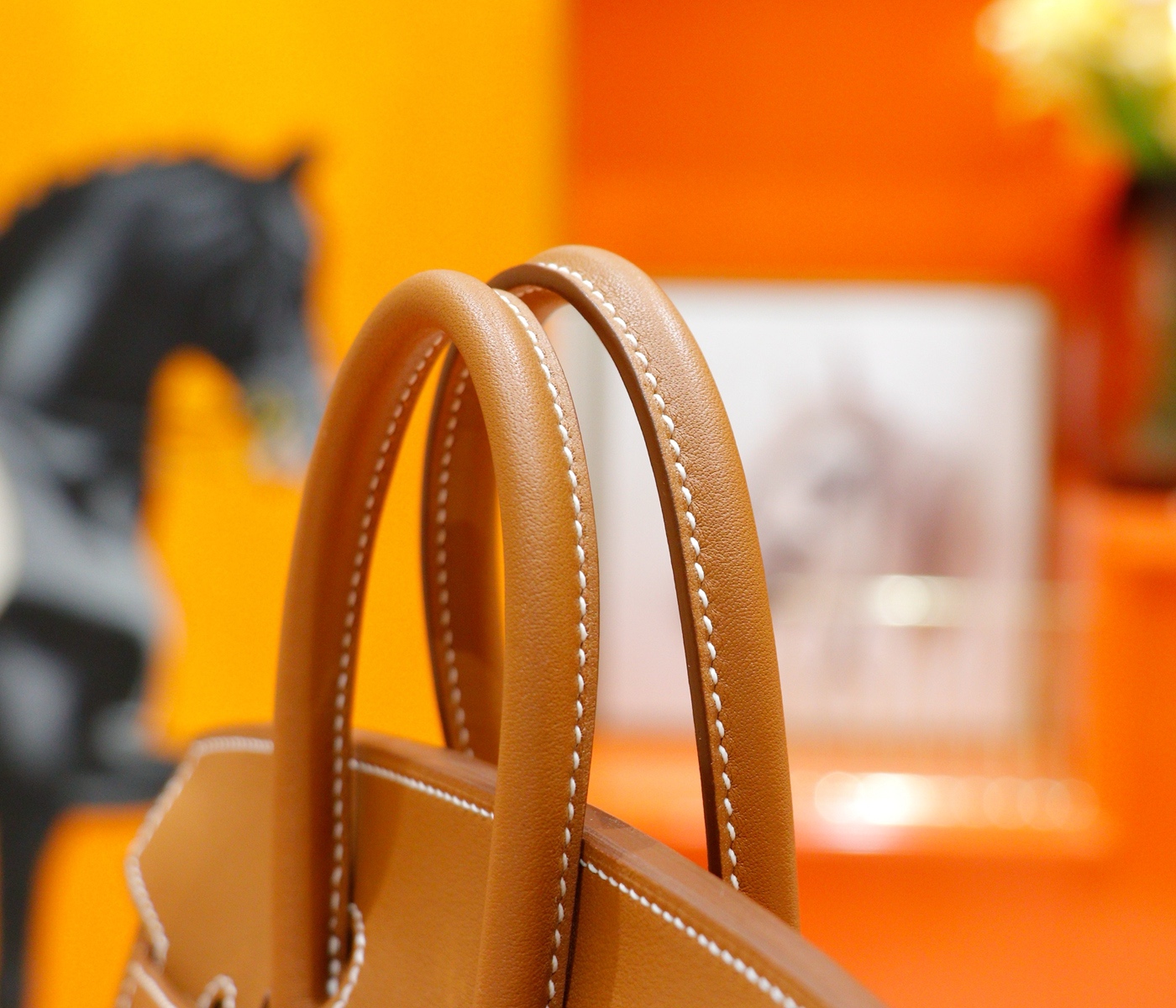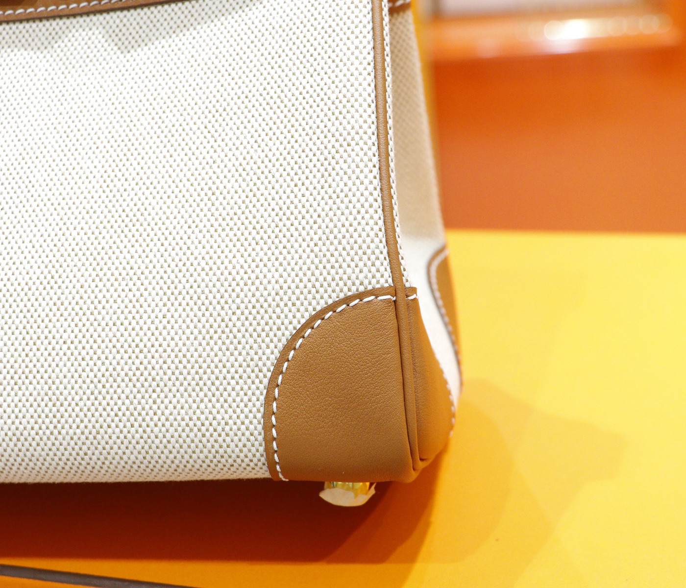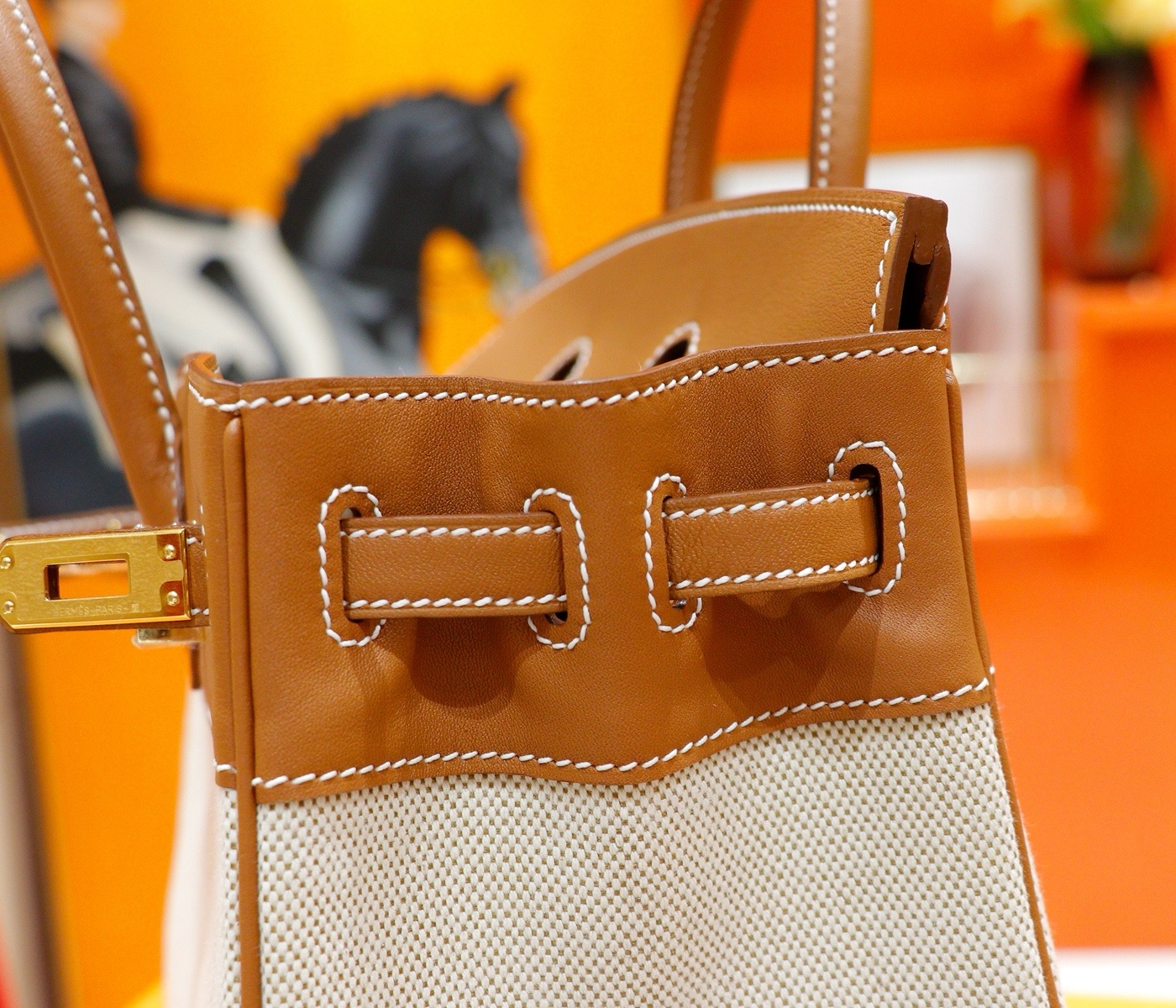 MrBirkin Birkin Swift Leather & Canvas Brown & White Gold Hardware 25cm Full Handmade