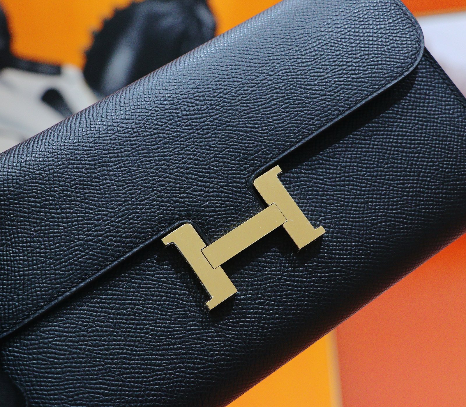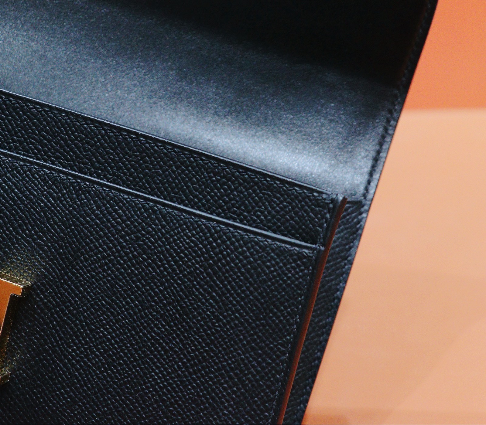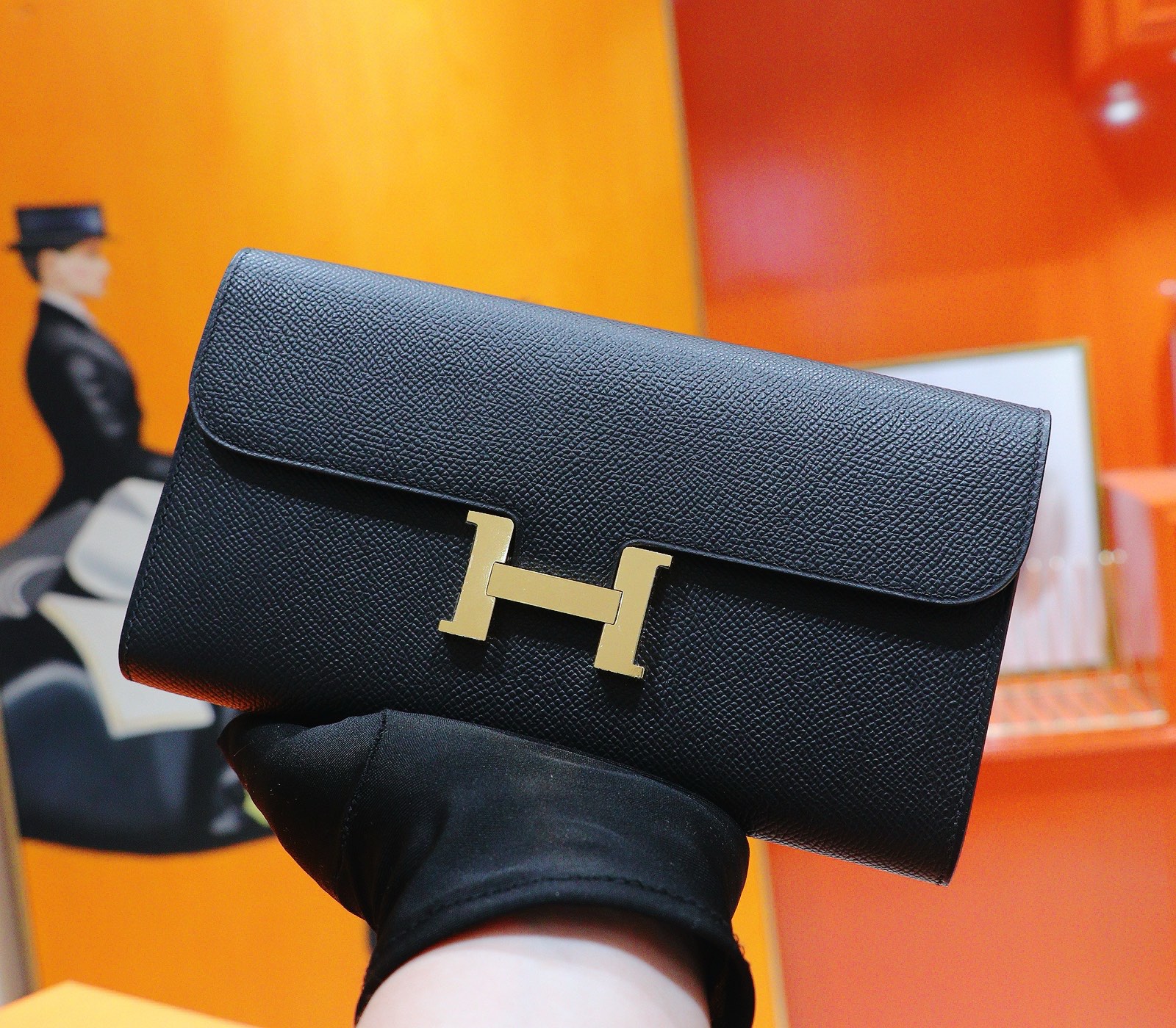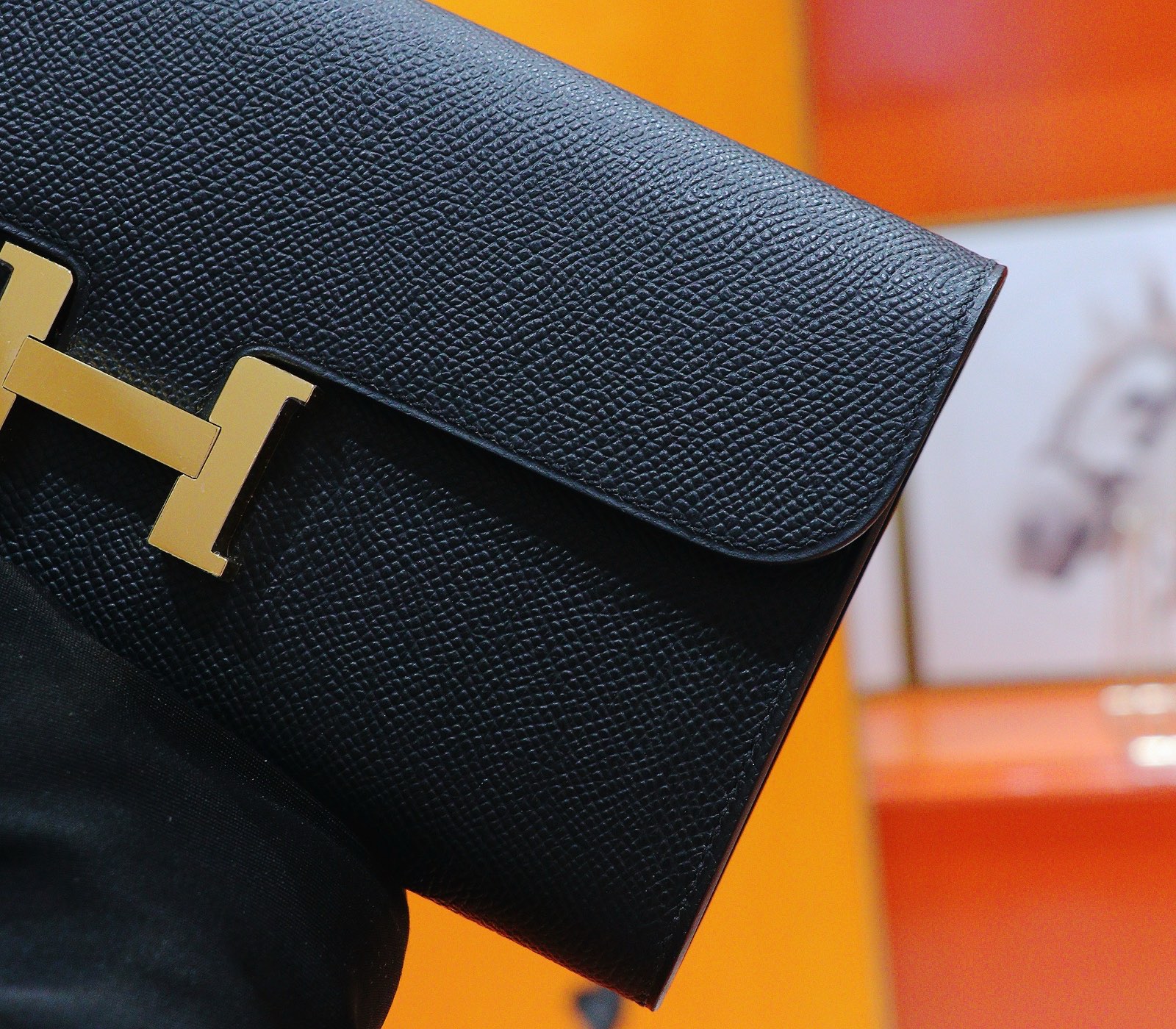 MrBirkin Constance To Go Long Wallet Epsom Leather Black Gold Hardware 21cm Full Handmade