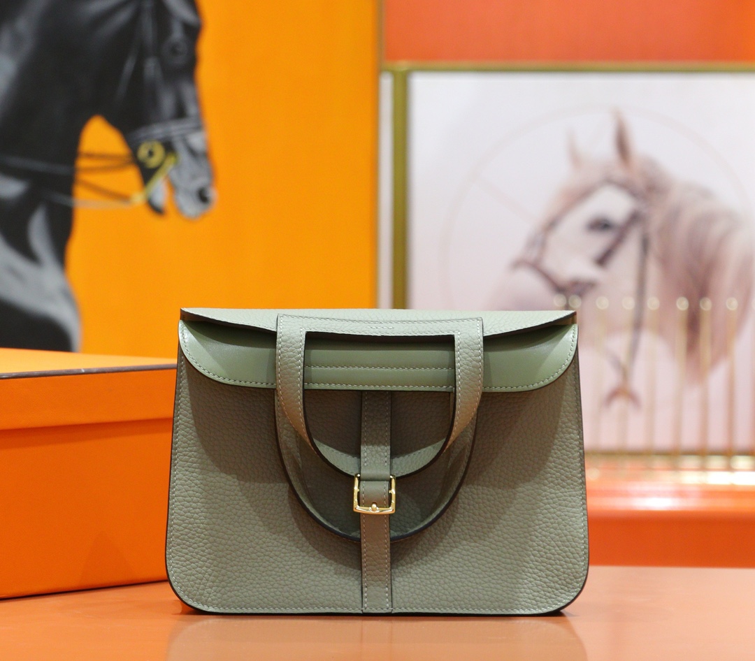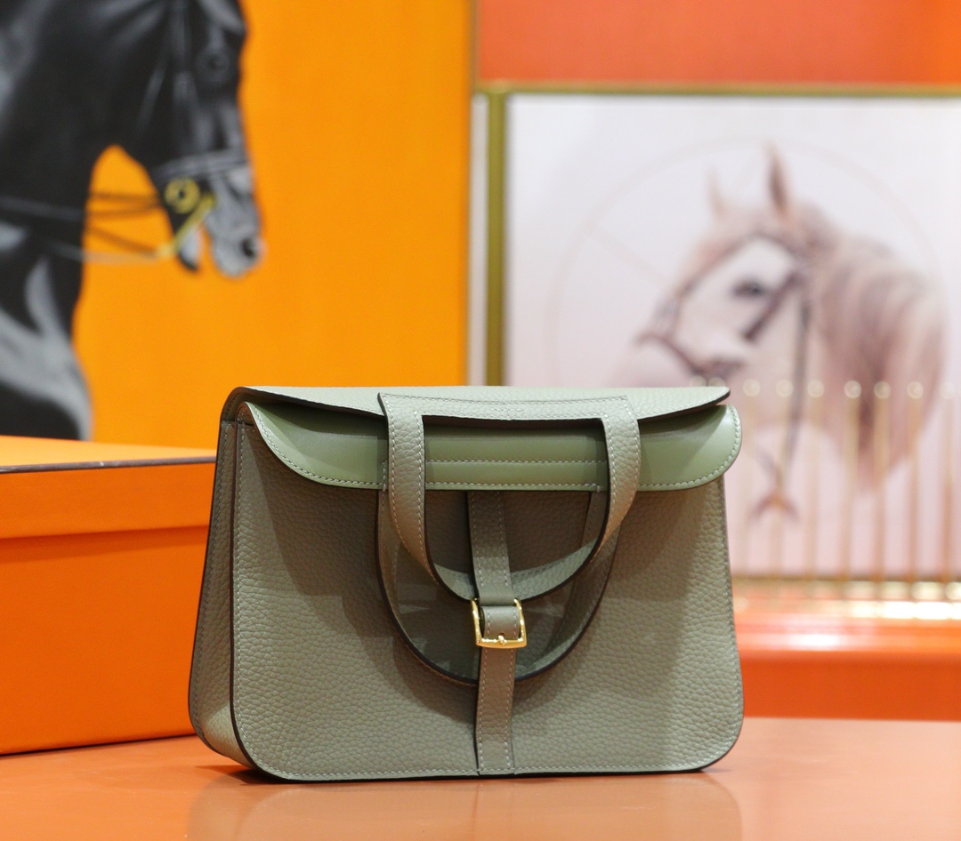 MrBirkin Halzan Togo Sage green Gold Hardware 20cm Full Handmade