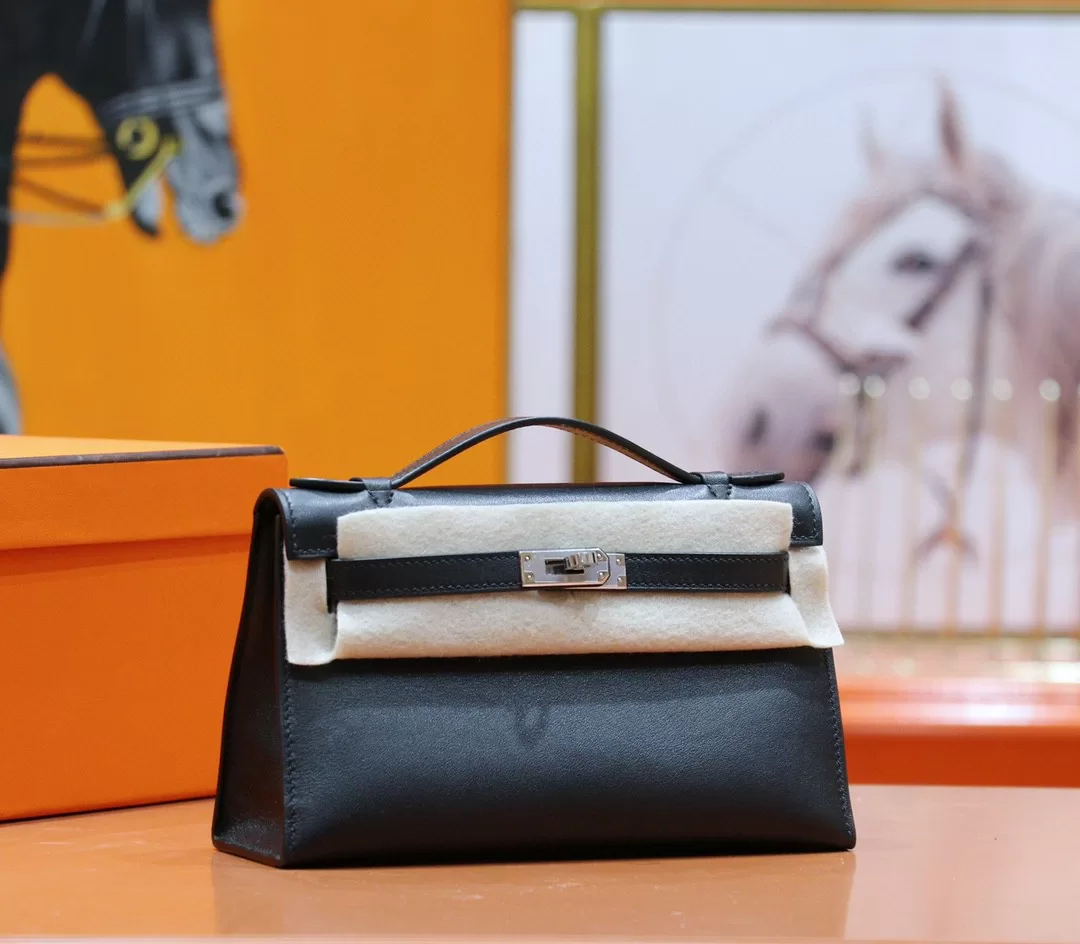 MrBirkin kelly Potteche Swift Black Silver Hardware 22cm Full Handmade