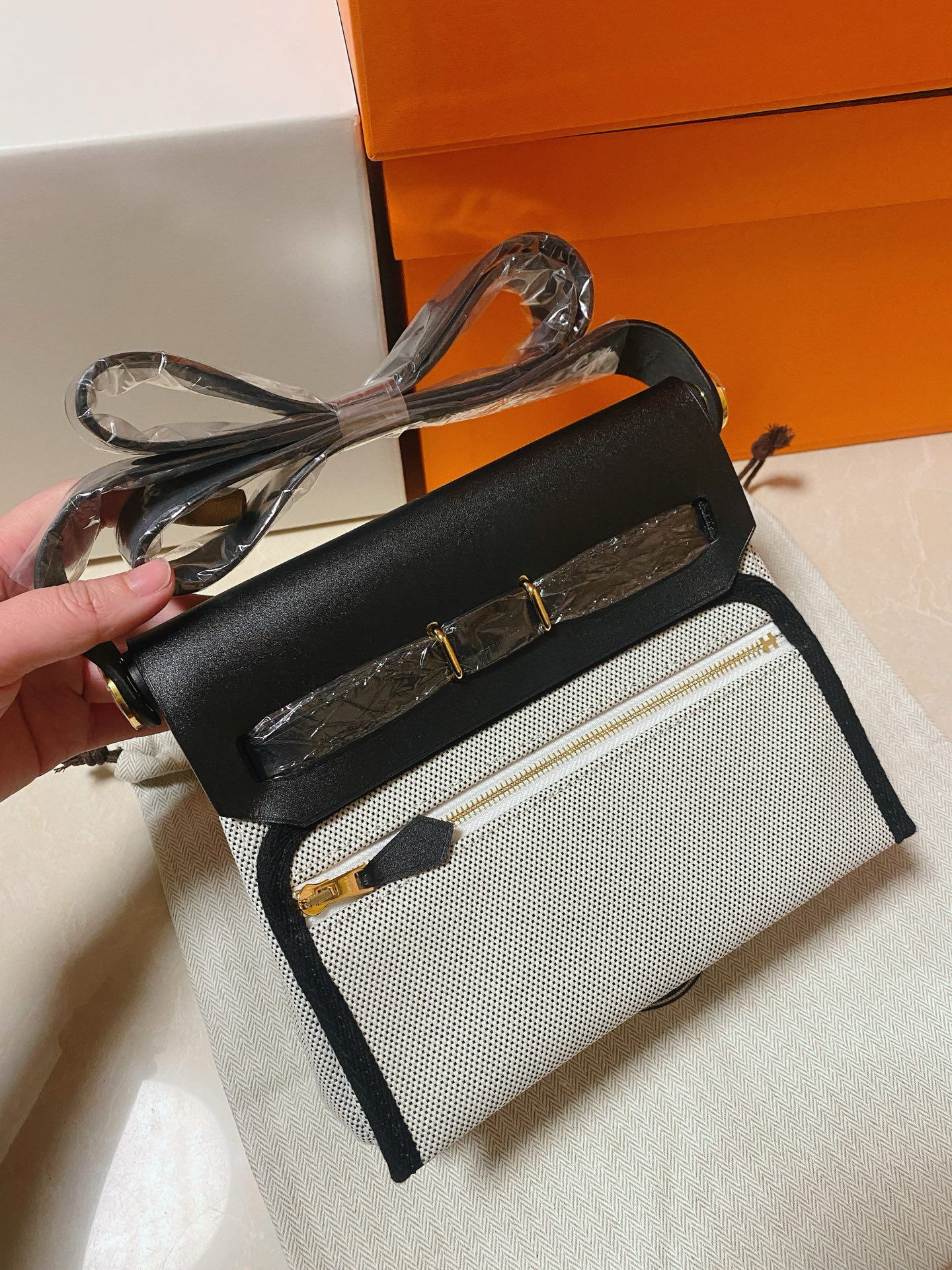 MrBirkin Mini Herbag Canvas & Leather Black Gold Hardware 20cm Full Handmade