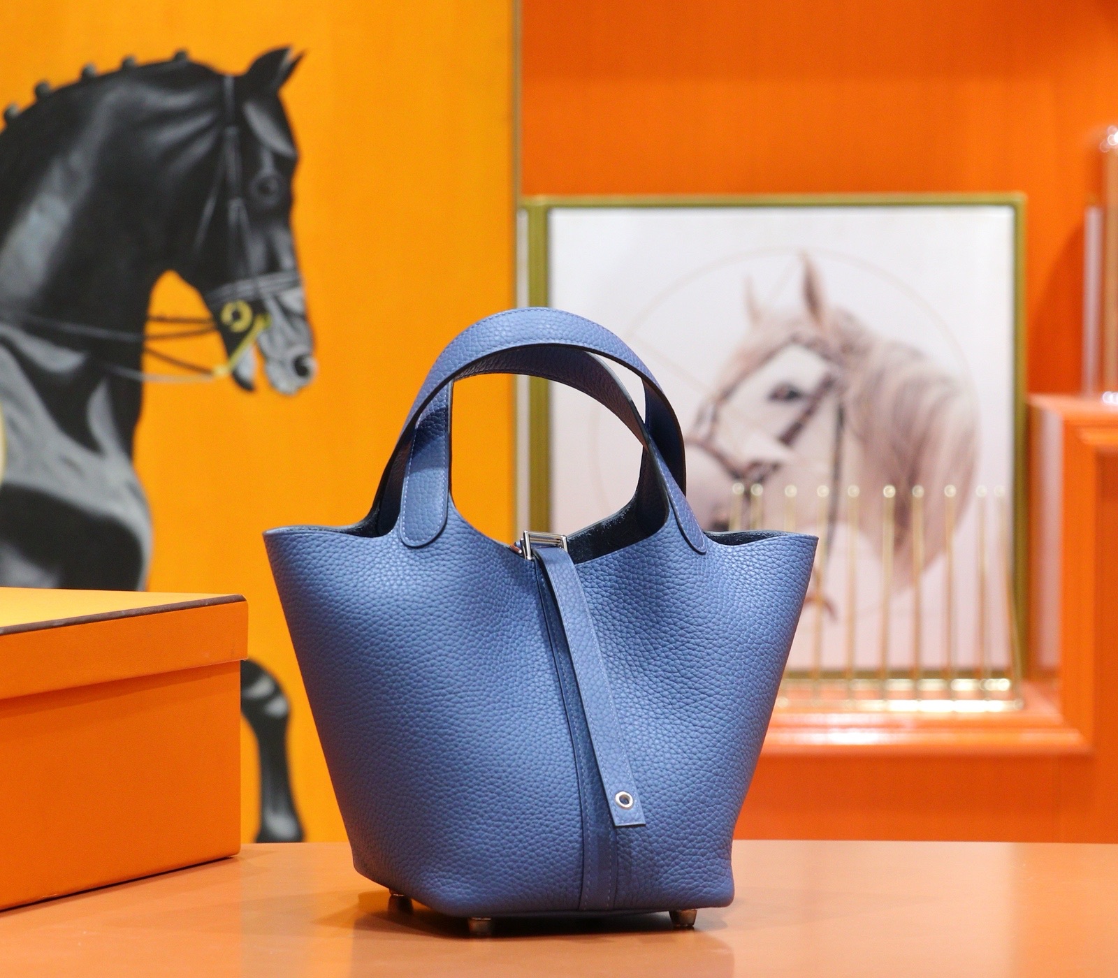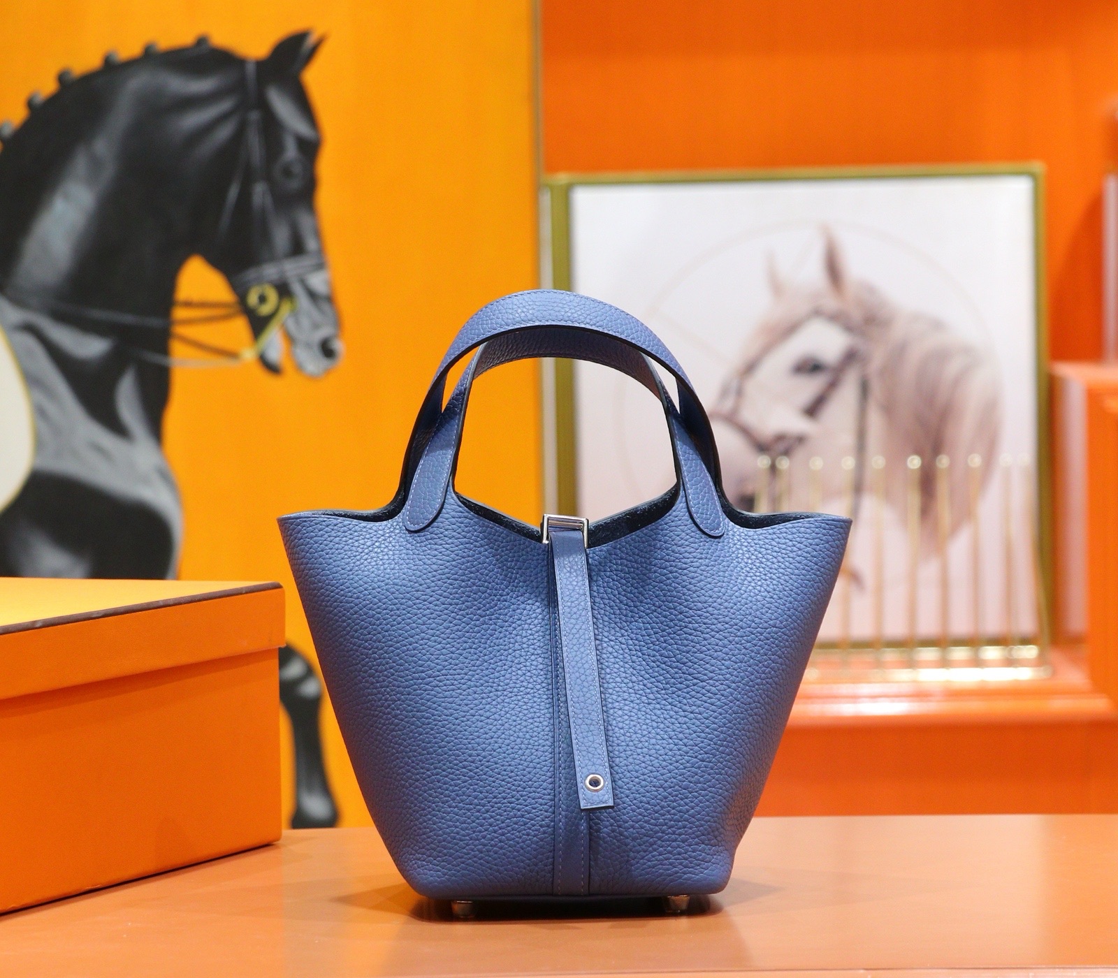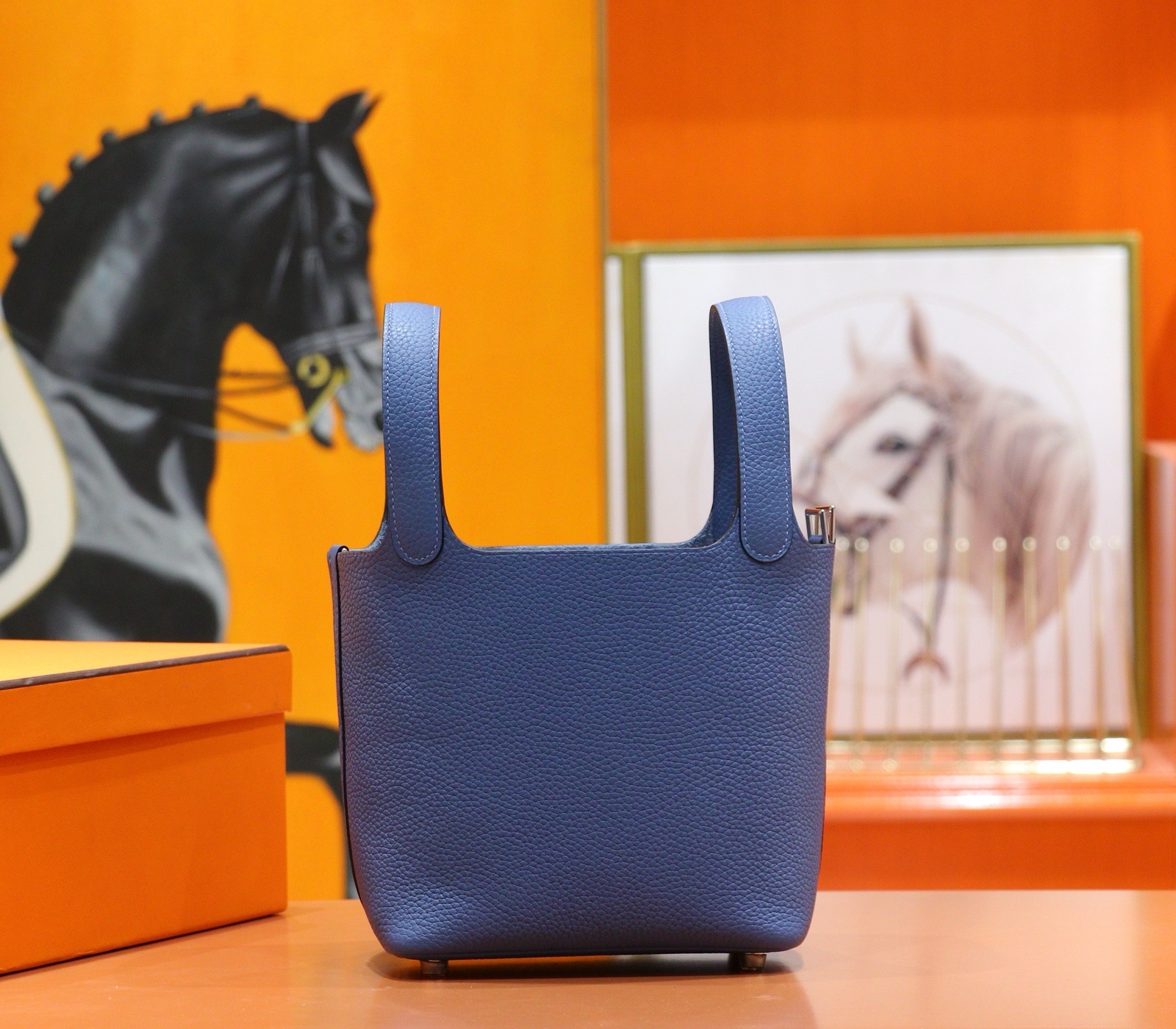 MrBirkin Picotin Togo Leather Gem Blue Silver Hardware 18cm Full Handmade