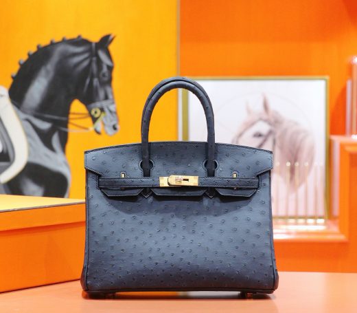 MrBirkin Birkin Ostrich Leather Gem Blue Gold Hardware 30cm Full Handmade