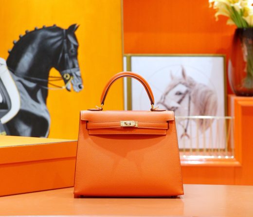 MrBirkin Kelly Epsom Leather Orange Gold Hardware 25cm Full Handmade