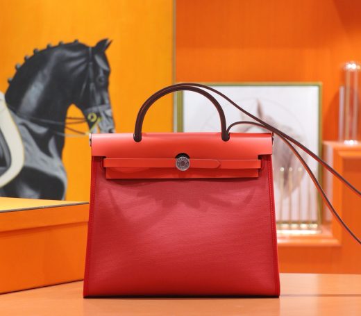 MrBirkin Herbag Canvas & Leather Red & Orange Silver Hardware 31cm Full Handmade