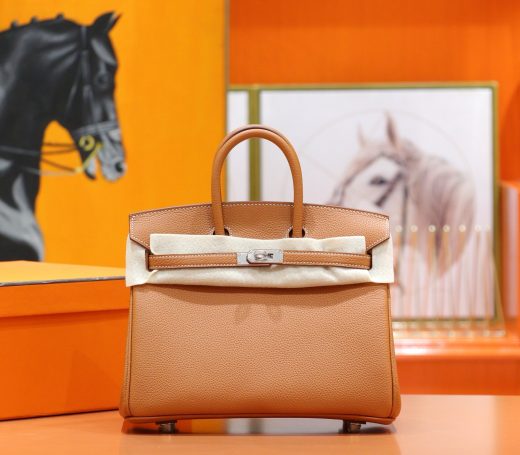 MrBirkin Birkin Togo Leather Golden Brown Silver Hardware 25cm Full Handmade