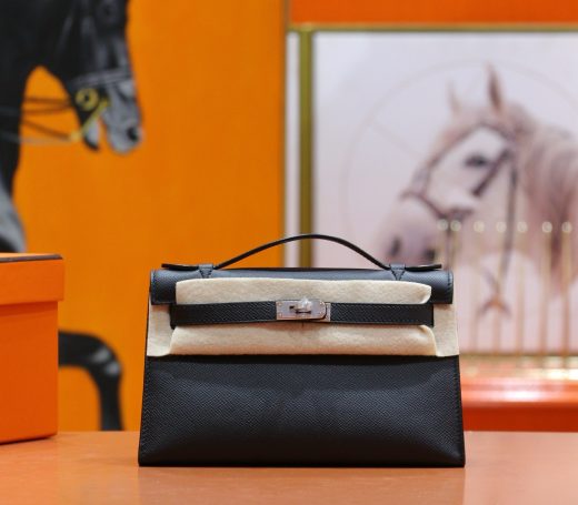 MrBirkin Mini kelly Pochette Epsom Leather Black Silver Hardware 22cm Full Handmade