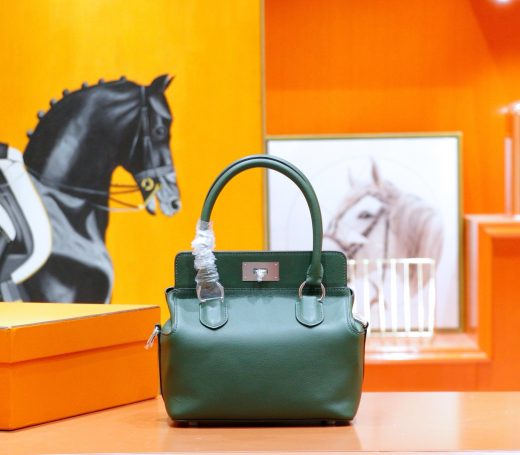 MrBirkin Toolbox Swift Leather olive green Silver Hardware 20cm Full Handmade